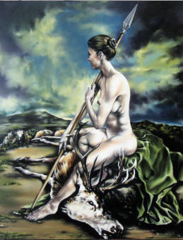 Galerie RON WEBER Vita Ausstellungen Presse Texte Göttin der Jagd                            2018 /  40 x 30     Öl auf Leinwand